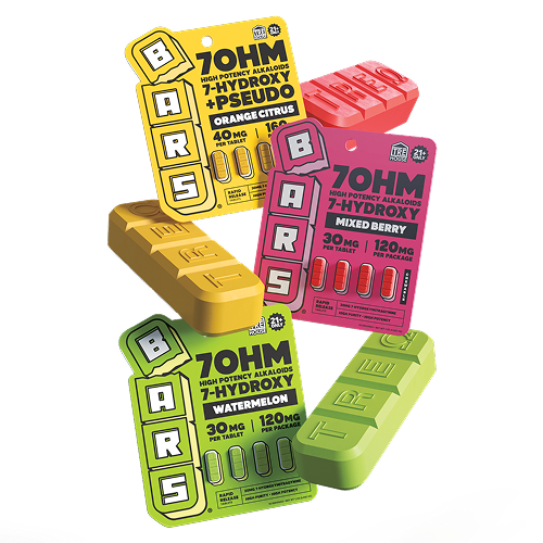 With practical packaging and a recognizable brand collaboration, the BARS X TRE HOUSE 7-OH + PSEUDO tablet lineup provides retailers with an easy-to-display product designed for convenient retail sales.