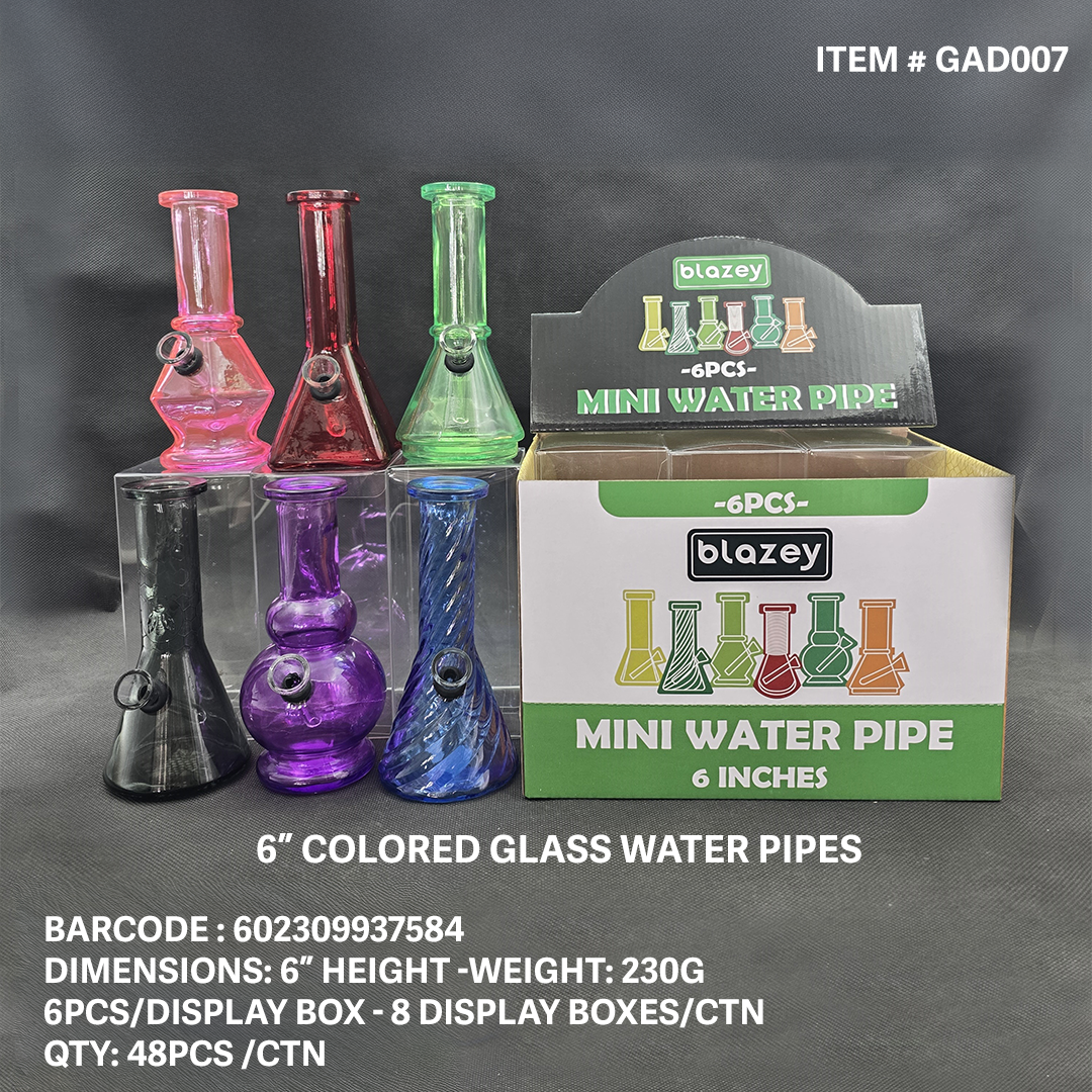 BLAZEY 6" GLASS WATER PIPE COLORED 6CT [GB007]
