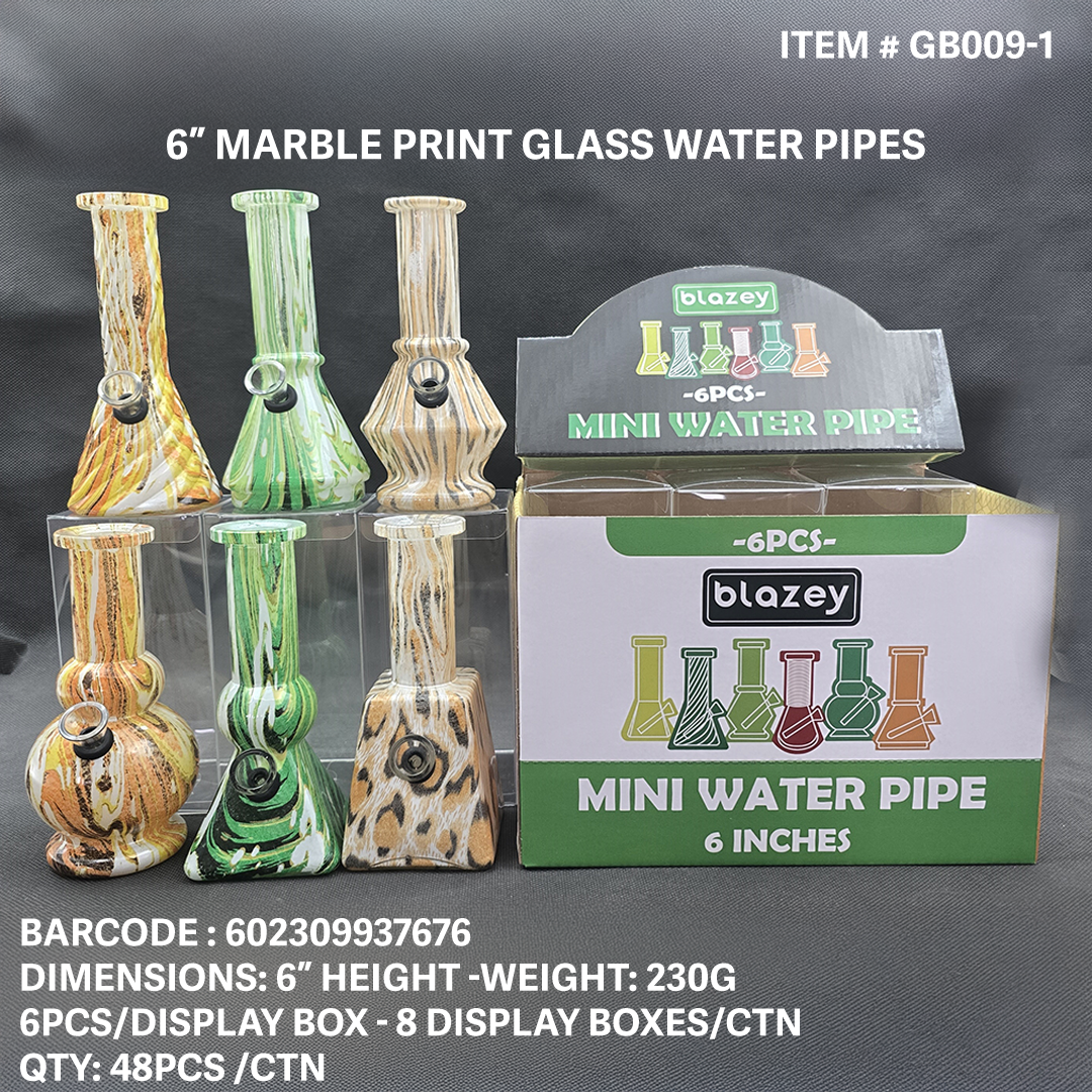 BLAZEY 6" GLASS WATER PIPE MARBLE PRINT 6CT [GB009]