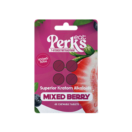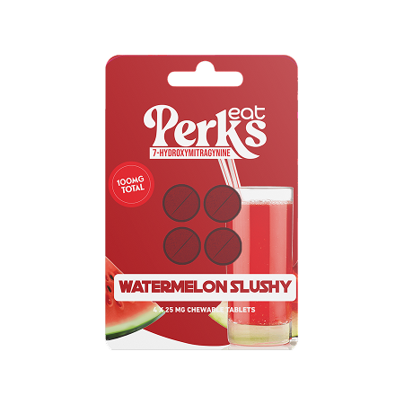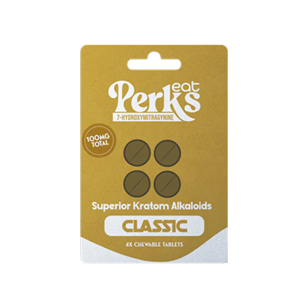 The EAT PERKS 4CT 100MG 7-OH TABLETS 10PK BOX is designed for convenience and consistent portion control. Each pack contains 4 tablets with a total strength of 100mg, offering a balanced format that is easy for customers to carry and use. Every display box includes 10 individual packs, making it a retail-ready product for stores.