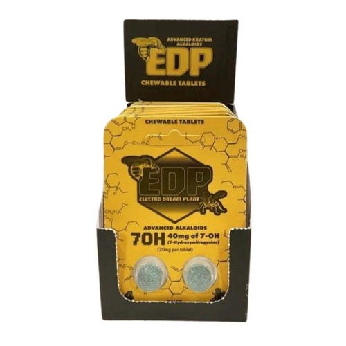 The EDP 2CT 40MG 7-OH TABLETS 12PK BOX offers a compact tablet format designed for portability and convenient portion control. Each pack contains 2 tablets with a total strength of 40mg, providing a simple and easy-to-carry option for customers.