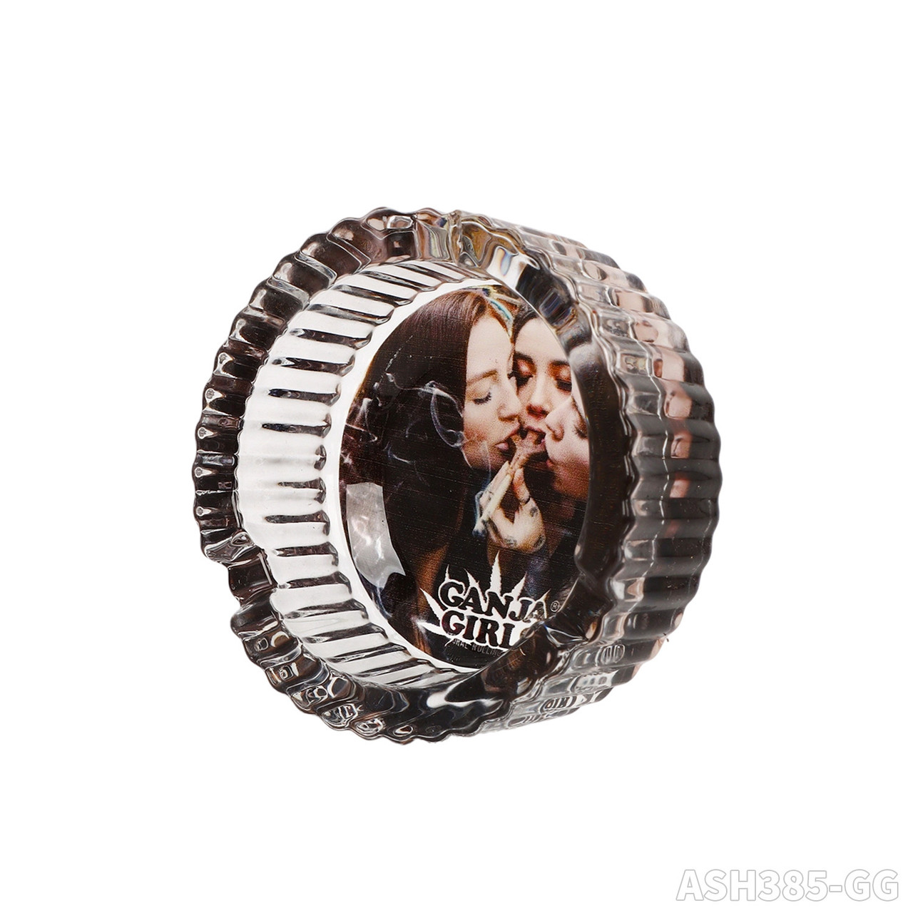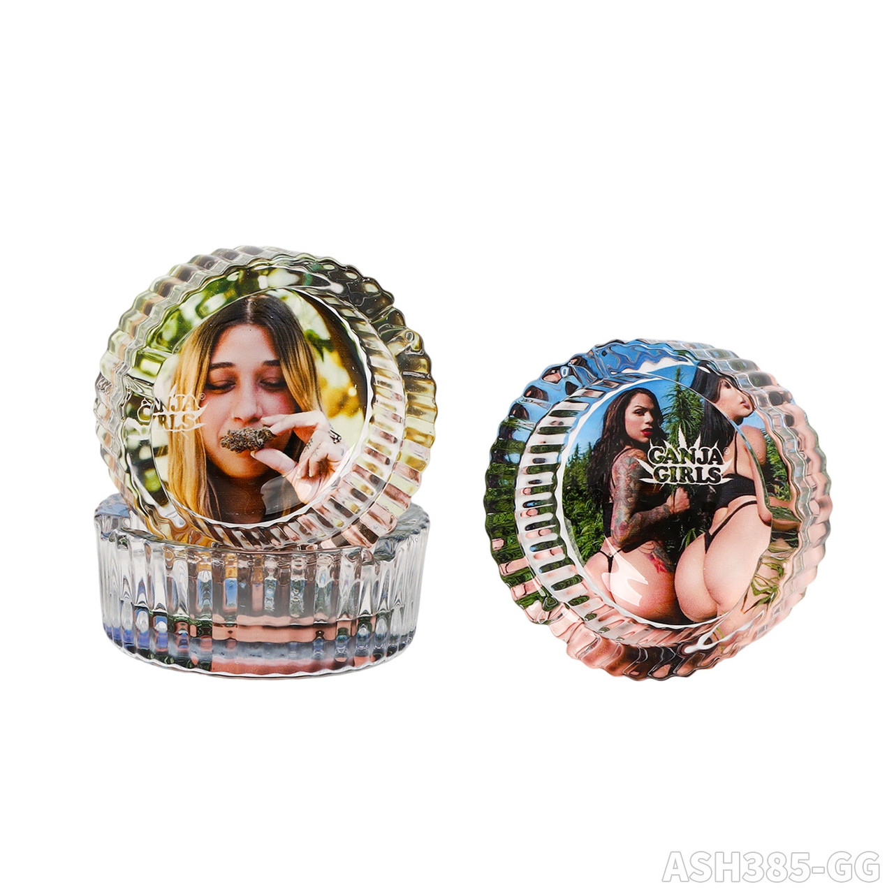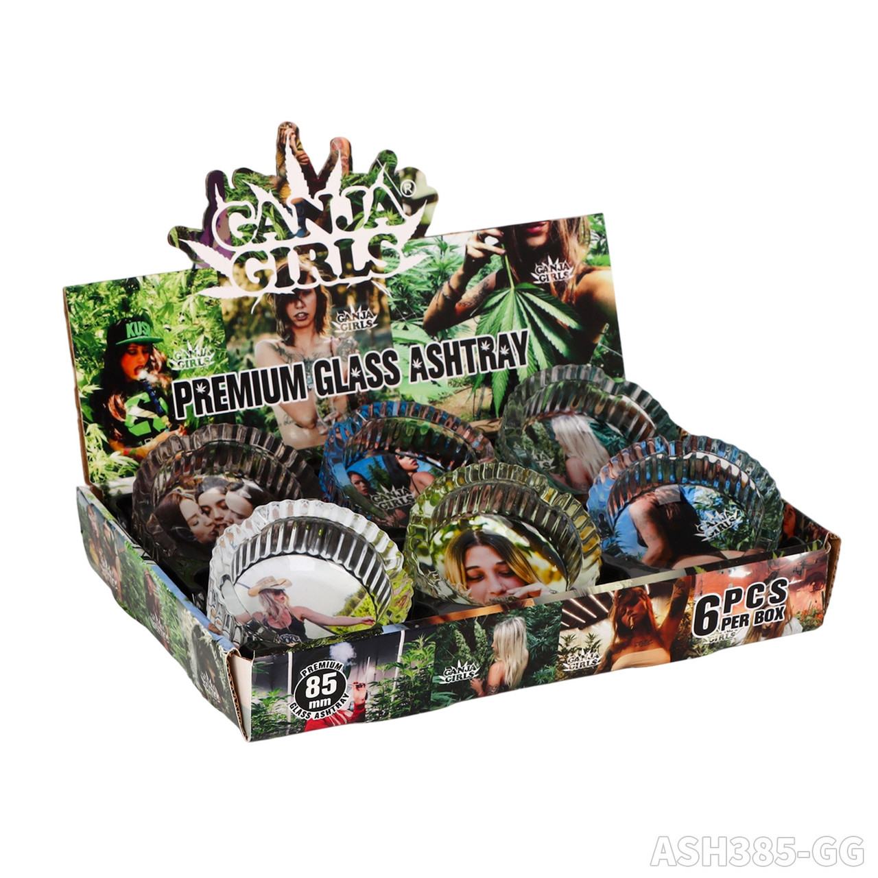 GANJA GIRLS 85MM PREMIUM GLASS ASHTRAY 6CT DISPLAY [ASH170-GG]