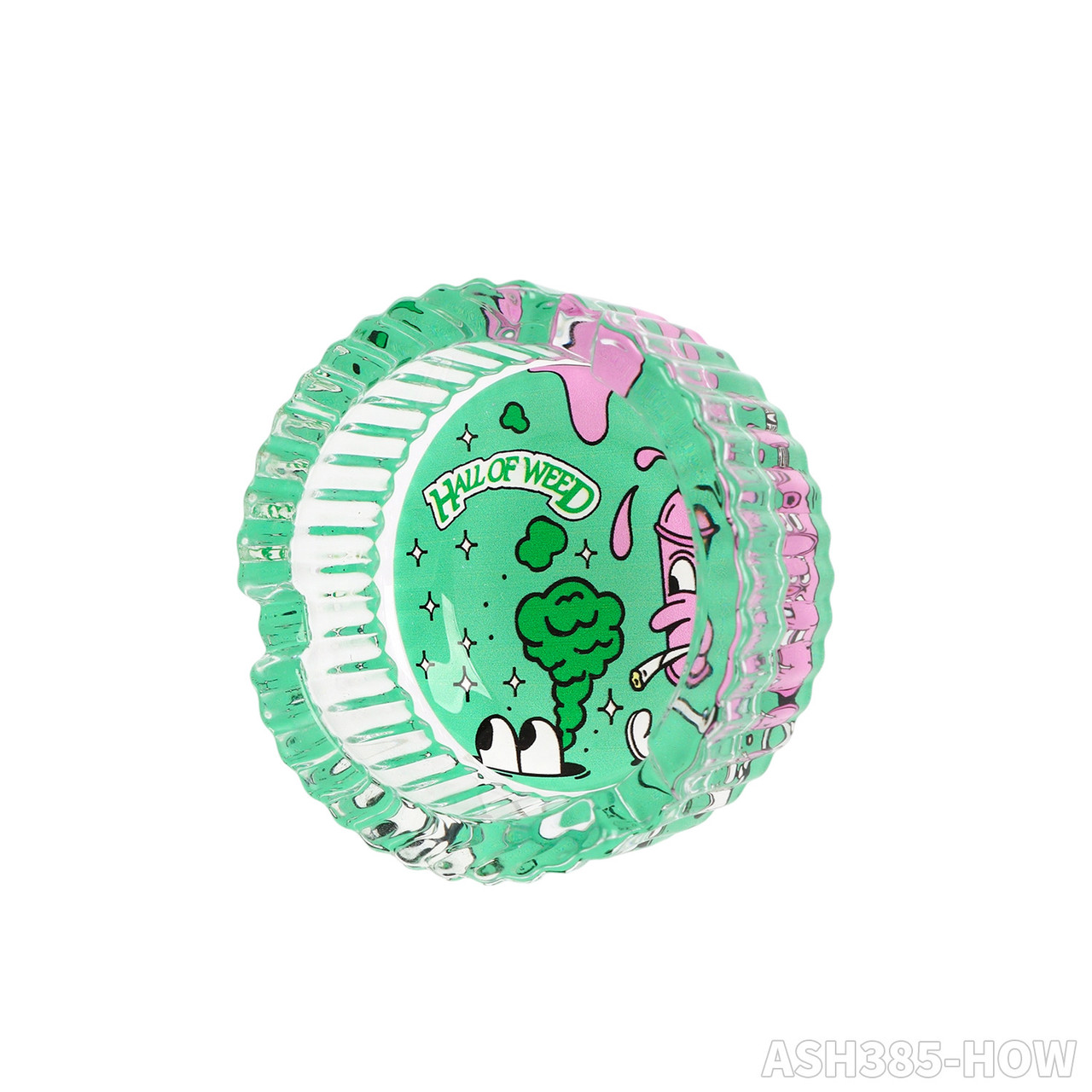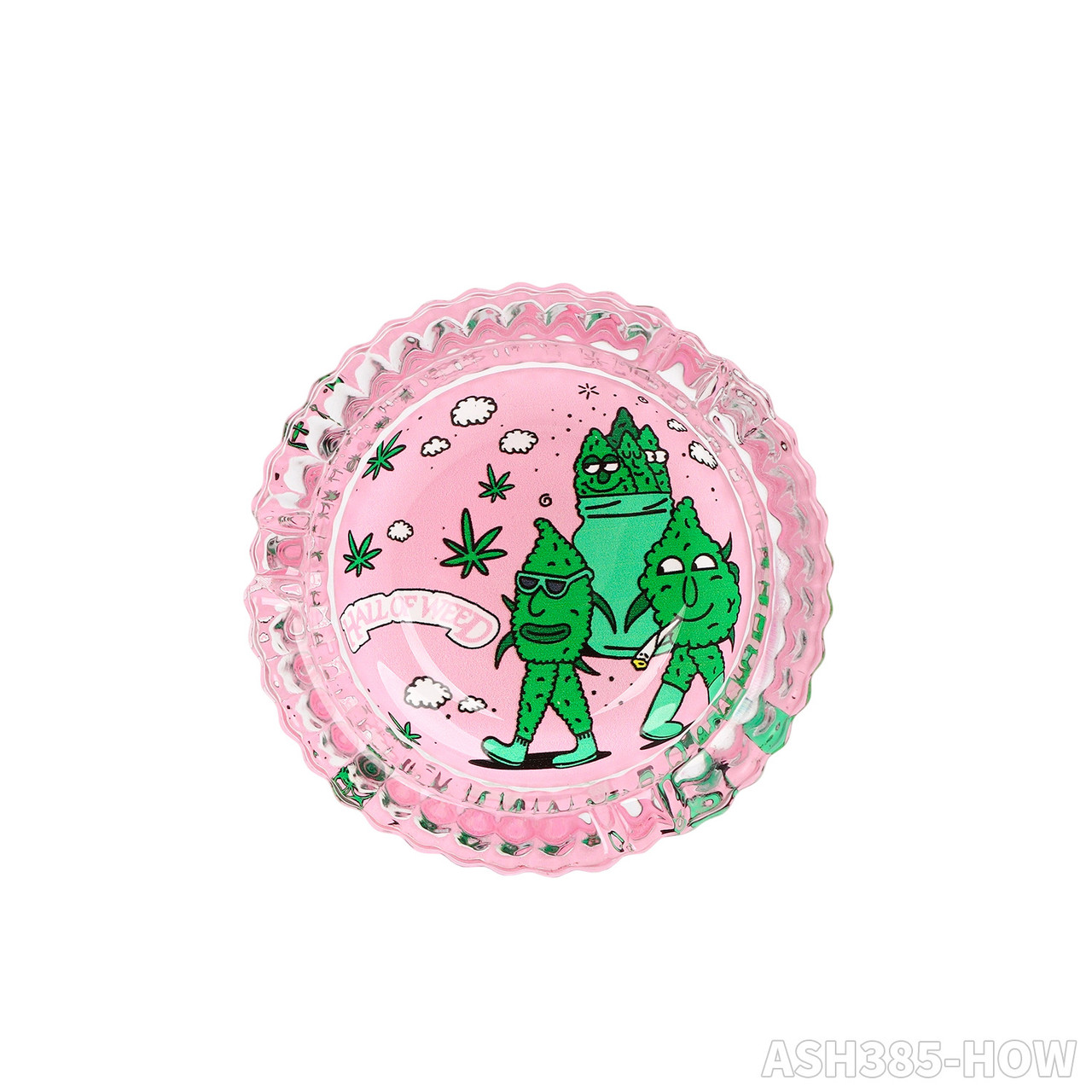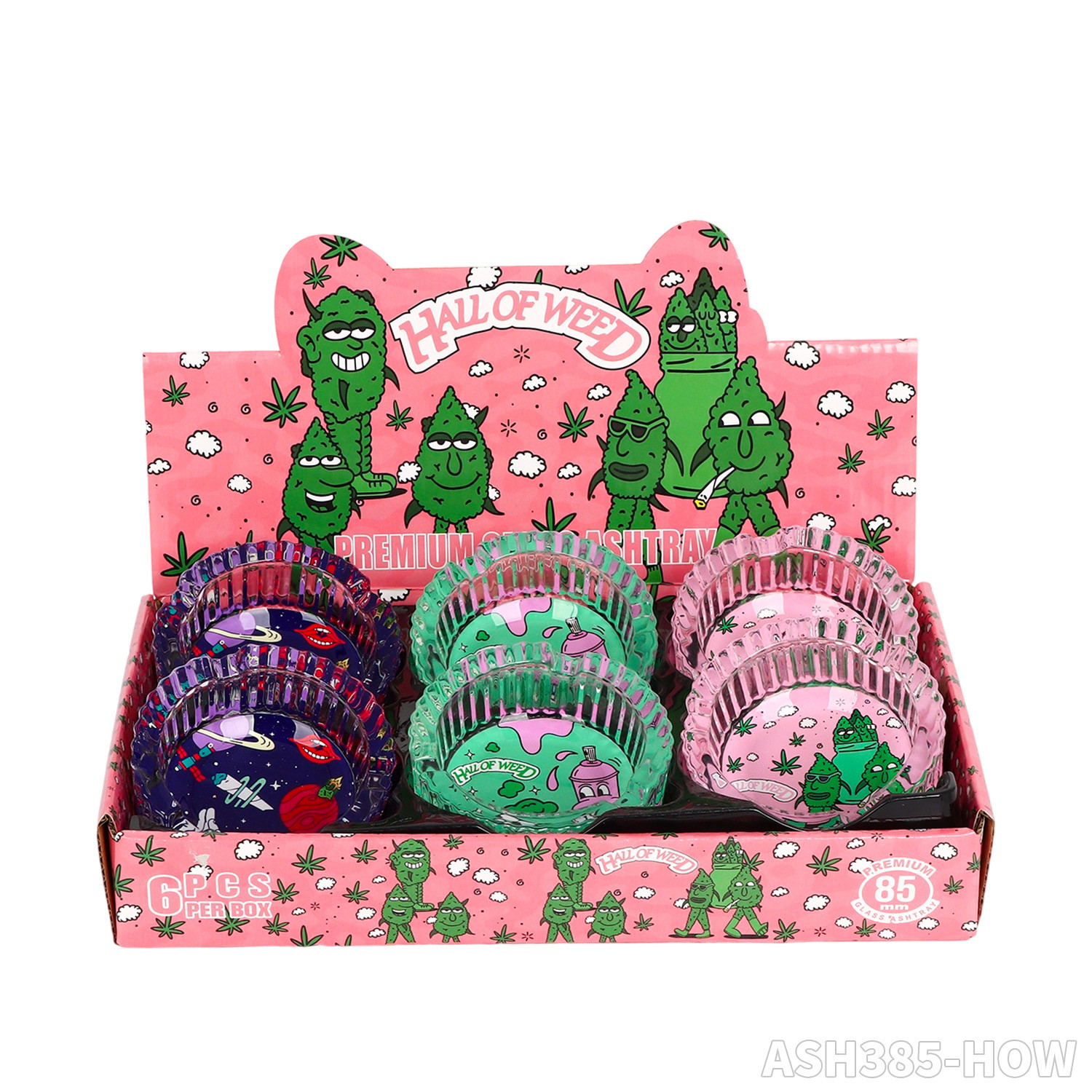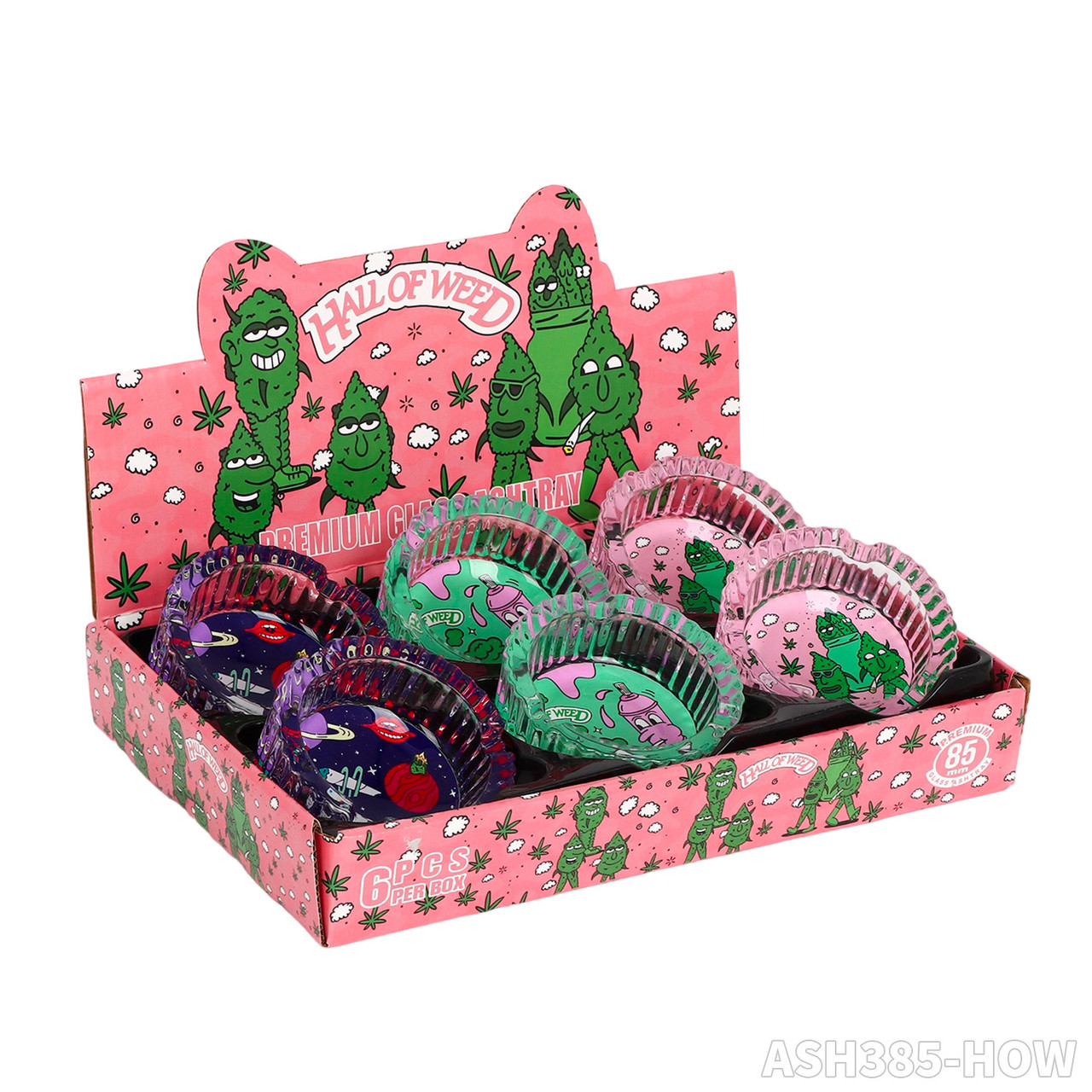 HALL OF WEED 85MM PREMIUM GLASS ASHTRAY 6CT DISPLAY [ASH170-HOW]