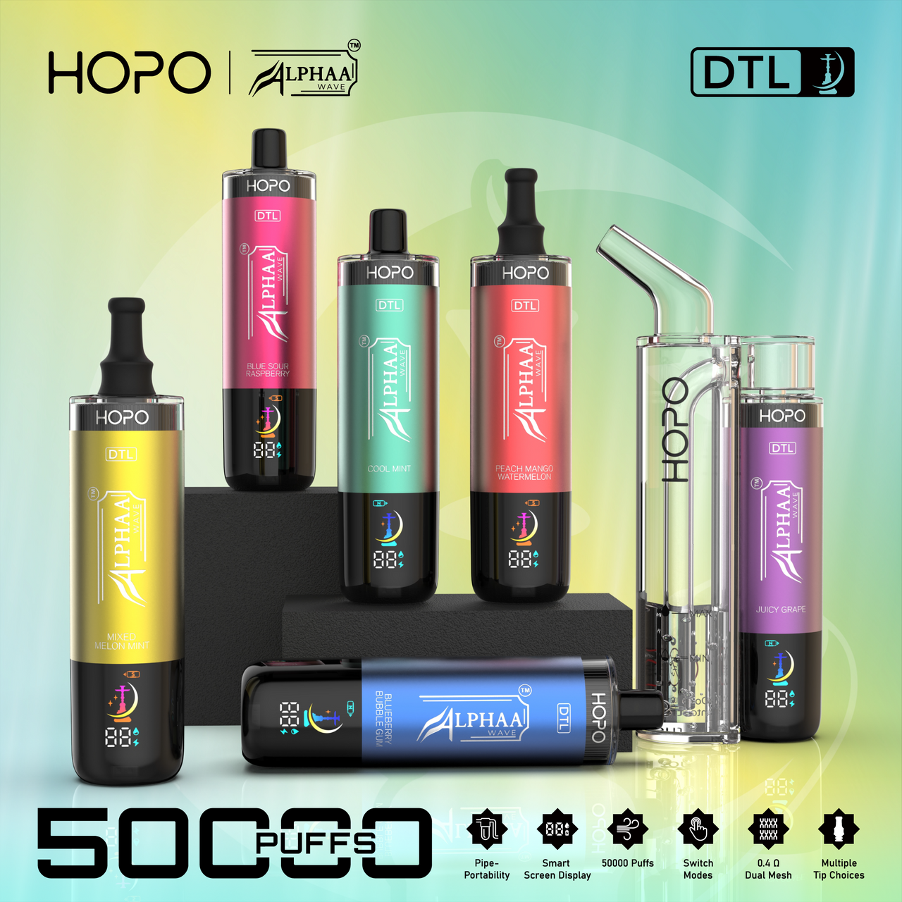 HOPO X ALPHAA WAVE DTL DISPOSABLE VAPE 50K PUFF 5CT