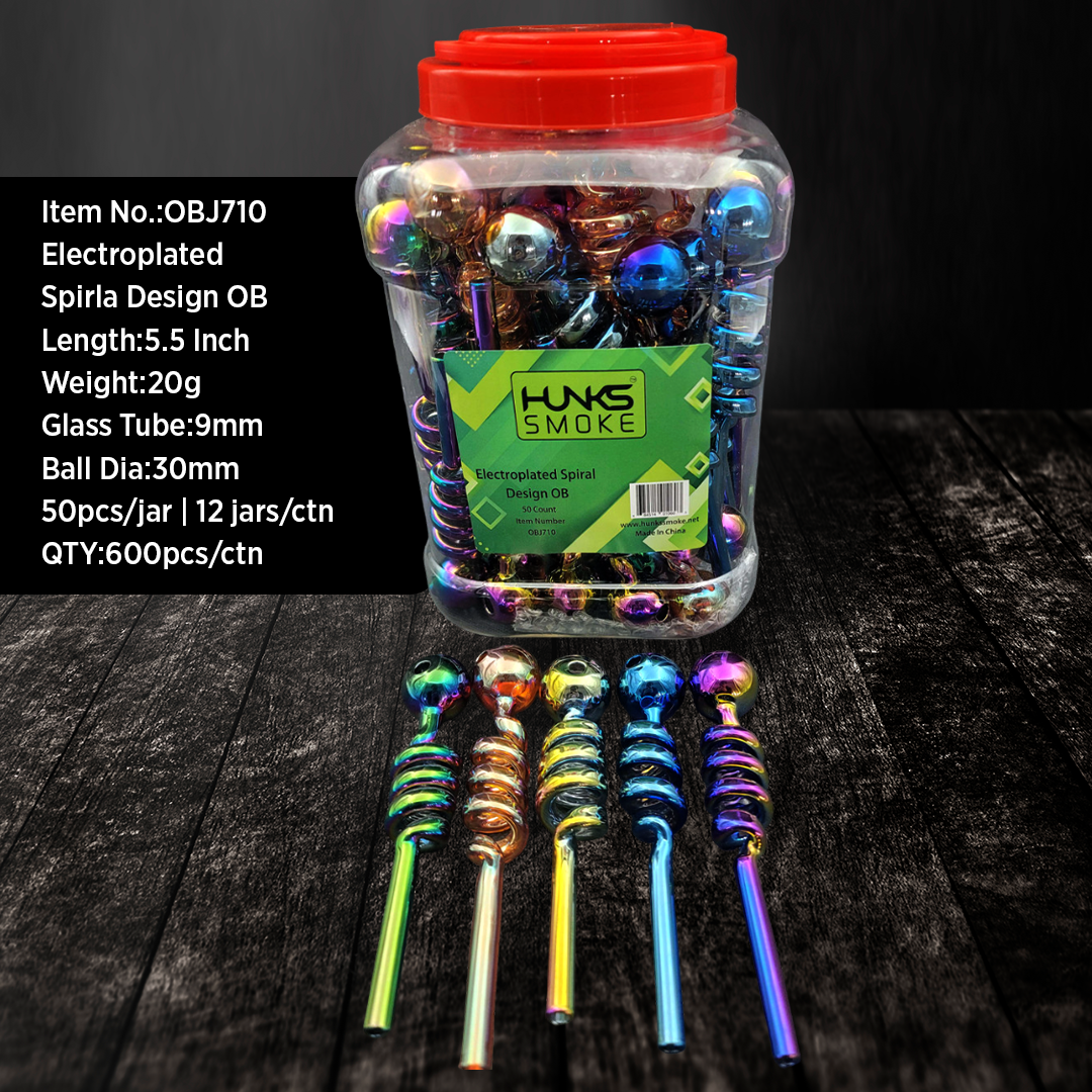 HUNKS SMOKE 5.5" ELECTRO PLATED SPIRAL DESIGN OIL BURNER 50CT JAR [OBJ710]