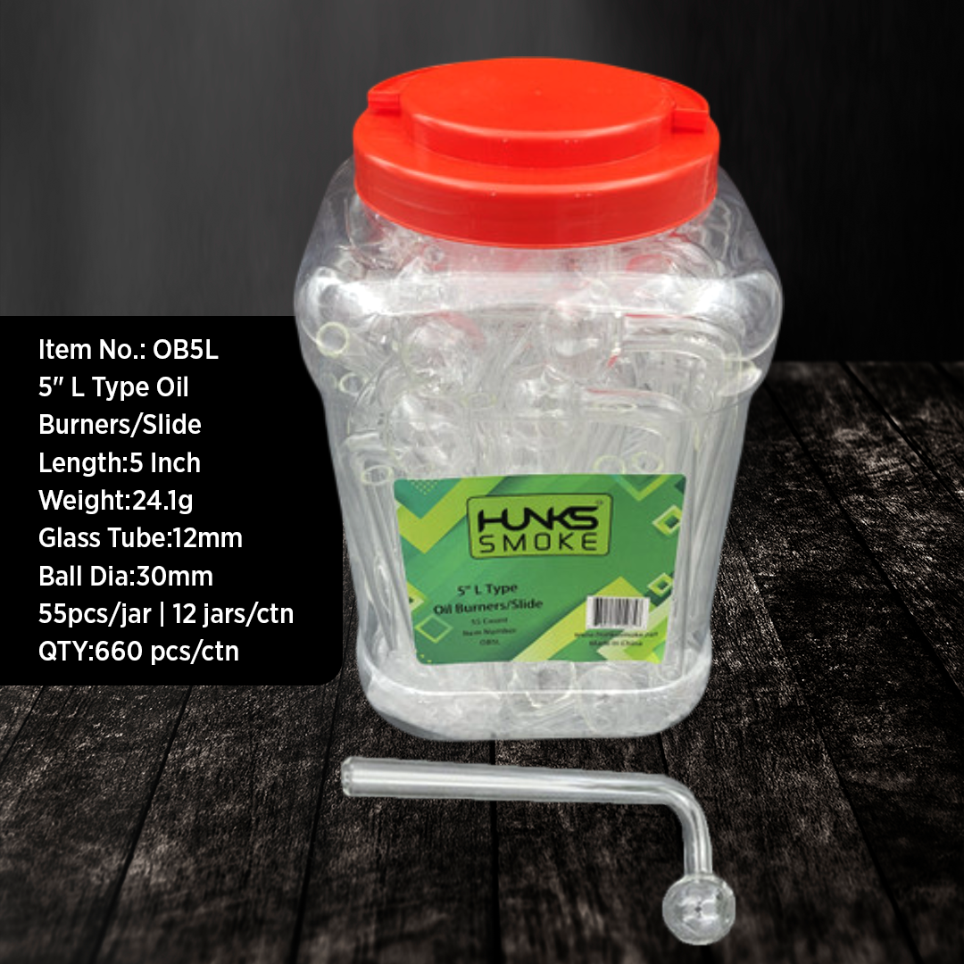 HUNKS SMOKE 5" L TYPE OIL BURNER/SLIDER 55CT JAR [OB5L]