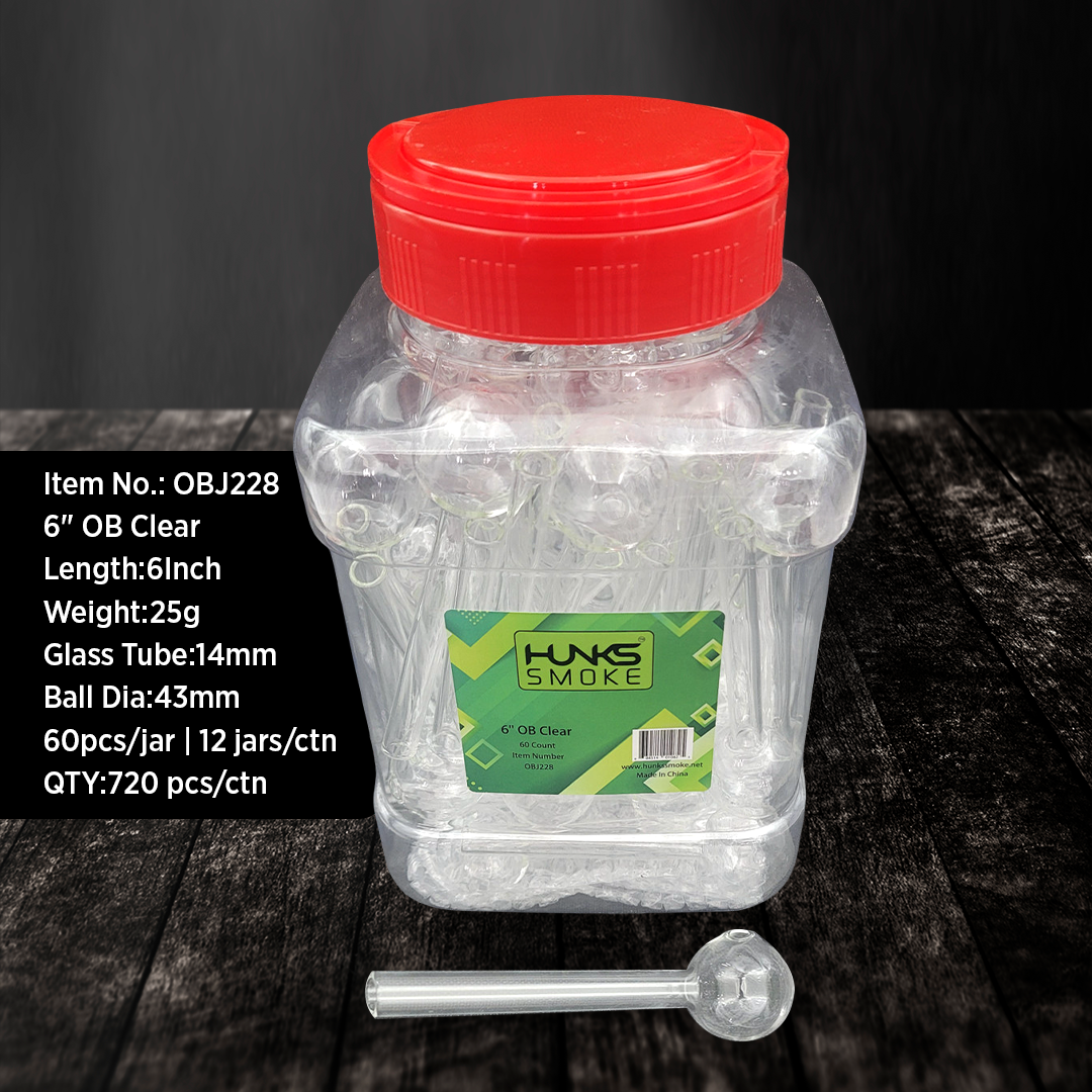 HUNKS SMOKE 6" OIL BURNER CLEAR 60CT JAR [OBJ228]