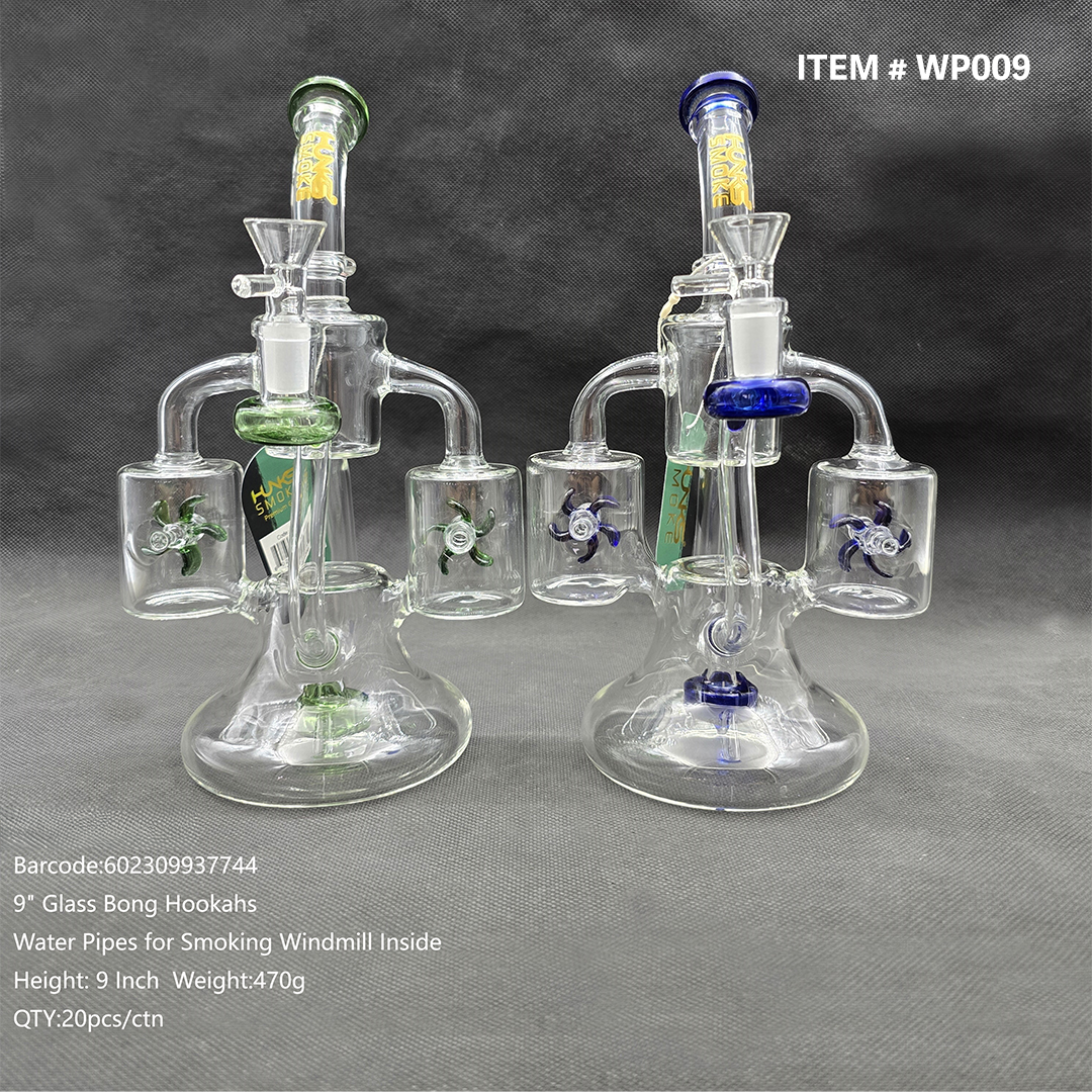 HUNKS SMOKE 9" GLASS WATER PIPE W/ WINDMILL [WP009]