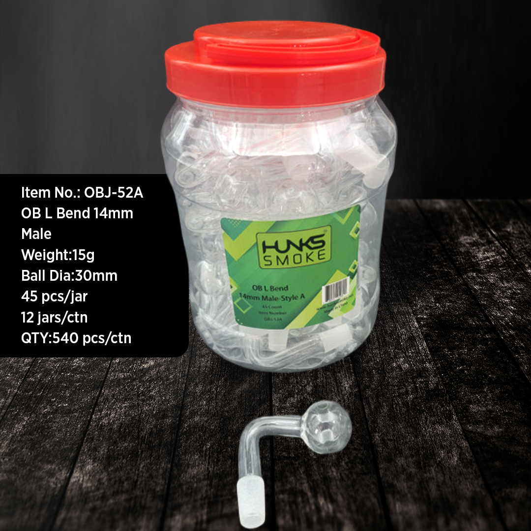 HUNKS SMOKE OIL BURNER L BEND 14MM MALE-STYLE A 45CT JAR [OBJ-52A]