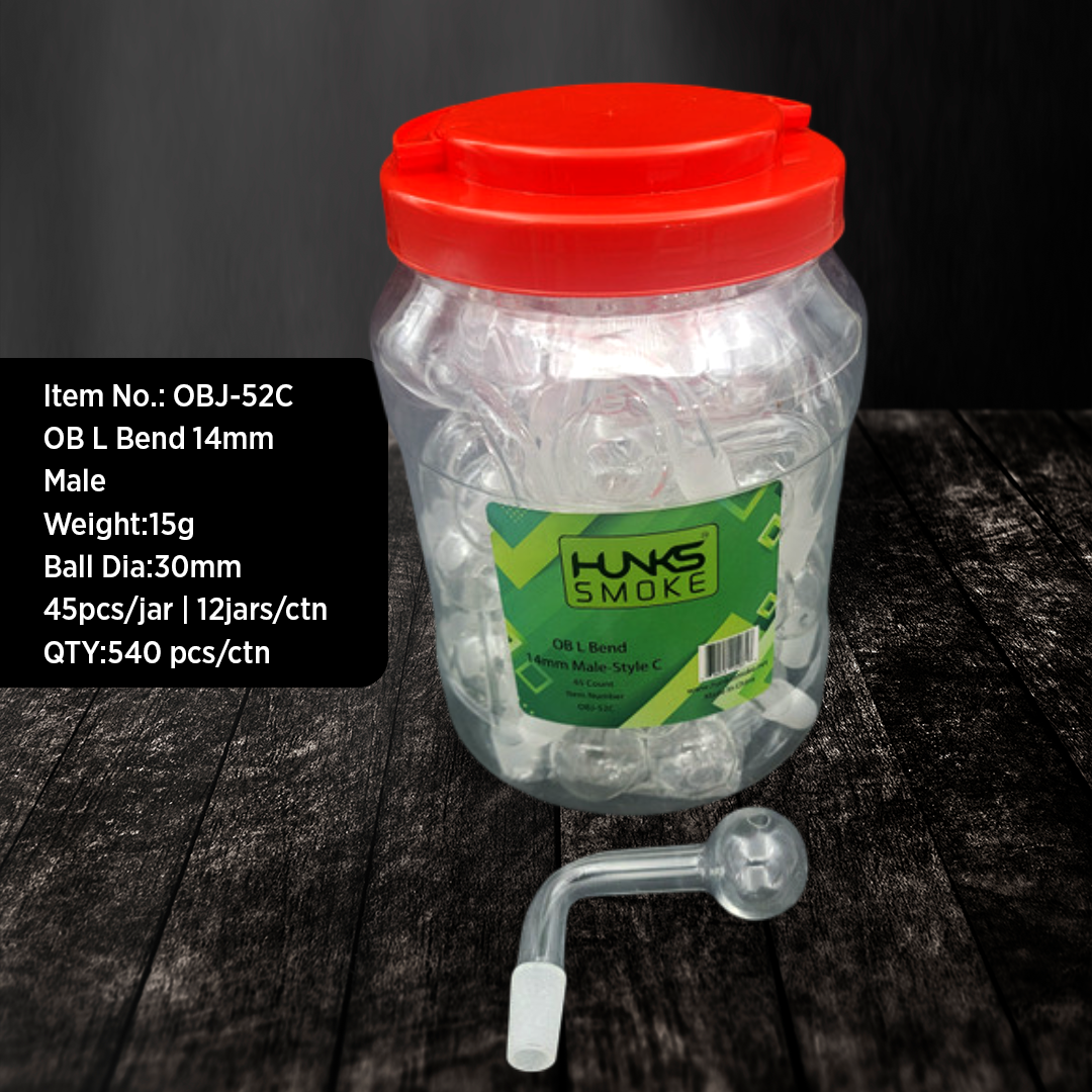 HUNKS SMOKE OIL BURNER L BEND 14MM MALE-STYLE C 45CT JAR [OBJ-52C]