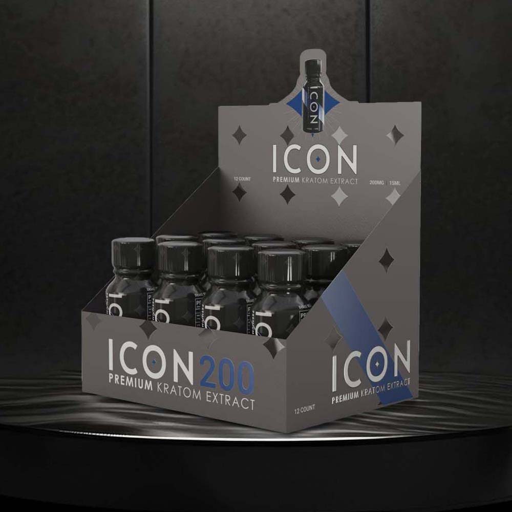 The ICON 200 15ML KRATOM EXTRACT 12CT BOX is designed for efficient retail stocking and strong shelf presence. Its convenient liquid format and display-ready packaging make it an excellent addition for stores expanding their kratom extract and liquid shot product categories.