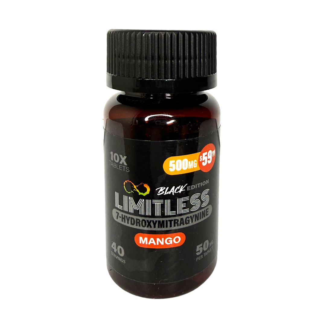 Known for its strength and reliability, the Limitless Black Edition provides a potent 500MG 7-OH experience per tablet, making it a standout option for customers looking for high-quality kratom tablets with consistent effects and strong shelf appeal.