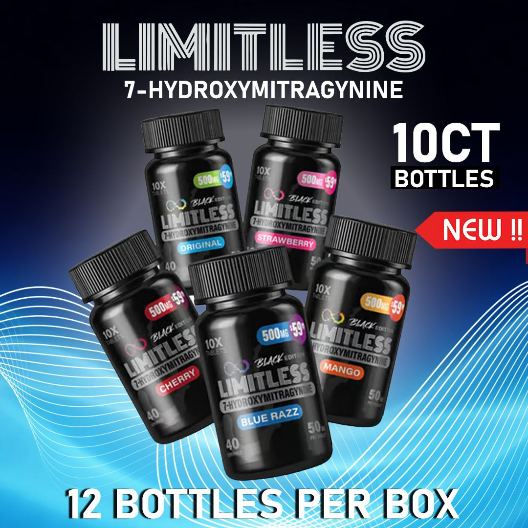 The LIMITLESS BLACK EDITION 10CT 500MG 7-OH KRATOM TABLETS is a premium high-potency kratom product designed for experienced users seeking strong and consistent performance. Manufactured with quality control and precision, this product delivers a powerful formulation in a convenient tablet form.