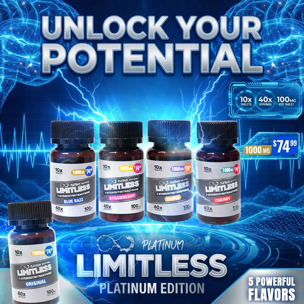 The LIMITLESS PLATINUM EDITION 10CT 1000MG 7-OH KRATOM TABLETS offers a powerful combination of high strength, premium presentation, and multiple flavor options. Its strong shelf appeal and convenient packaging make it an excellent addition to wholesale inventories, helping retailers meet customer demand with a trusted and high-performing product.