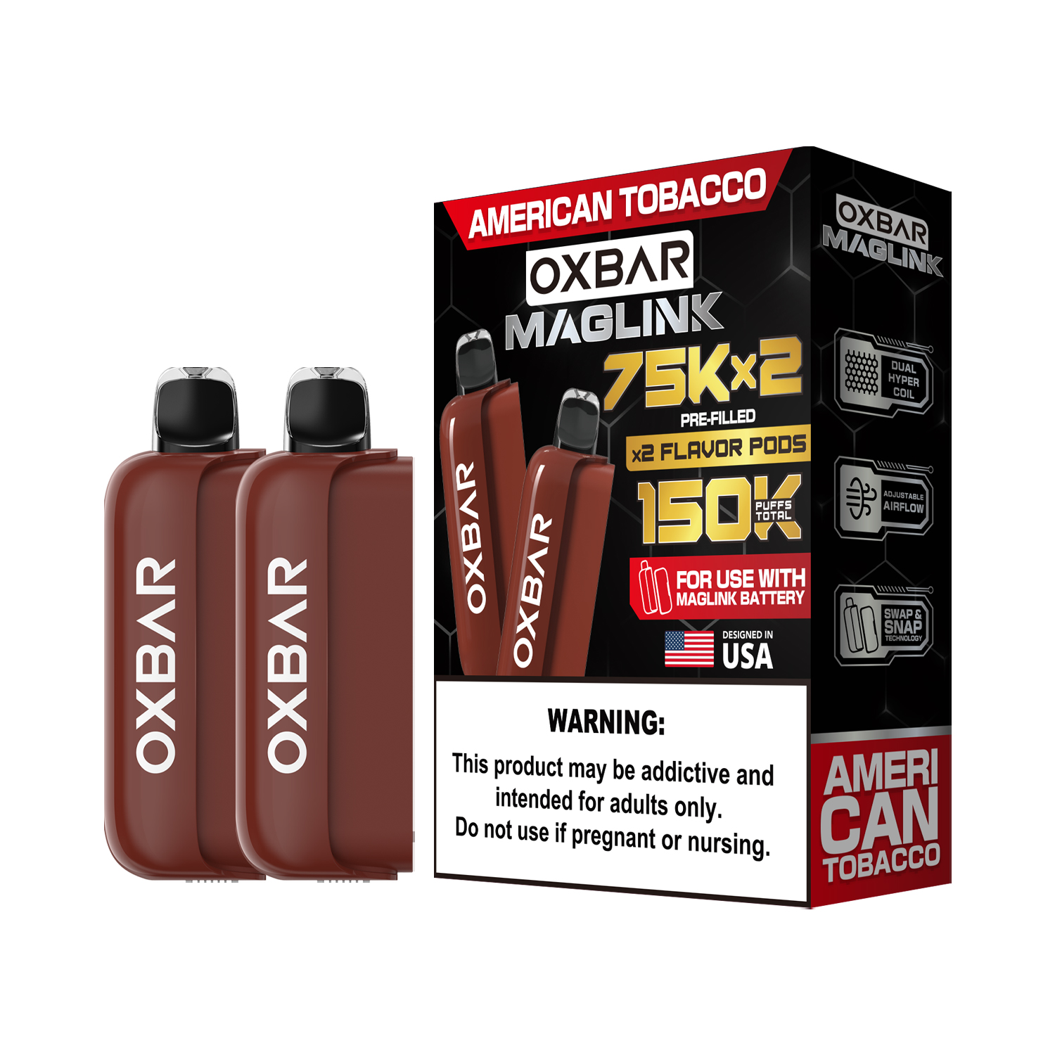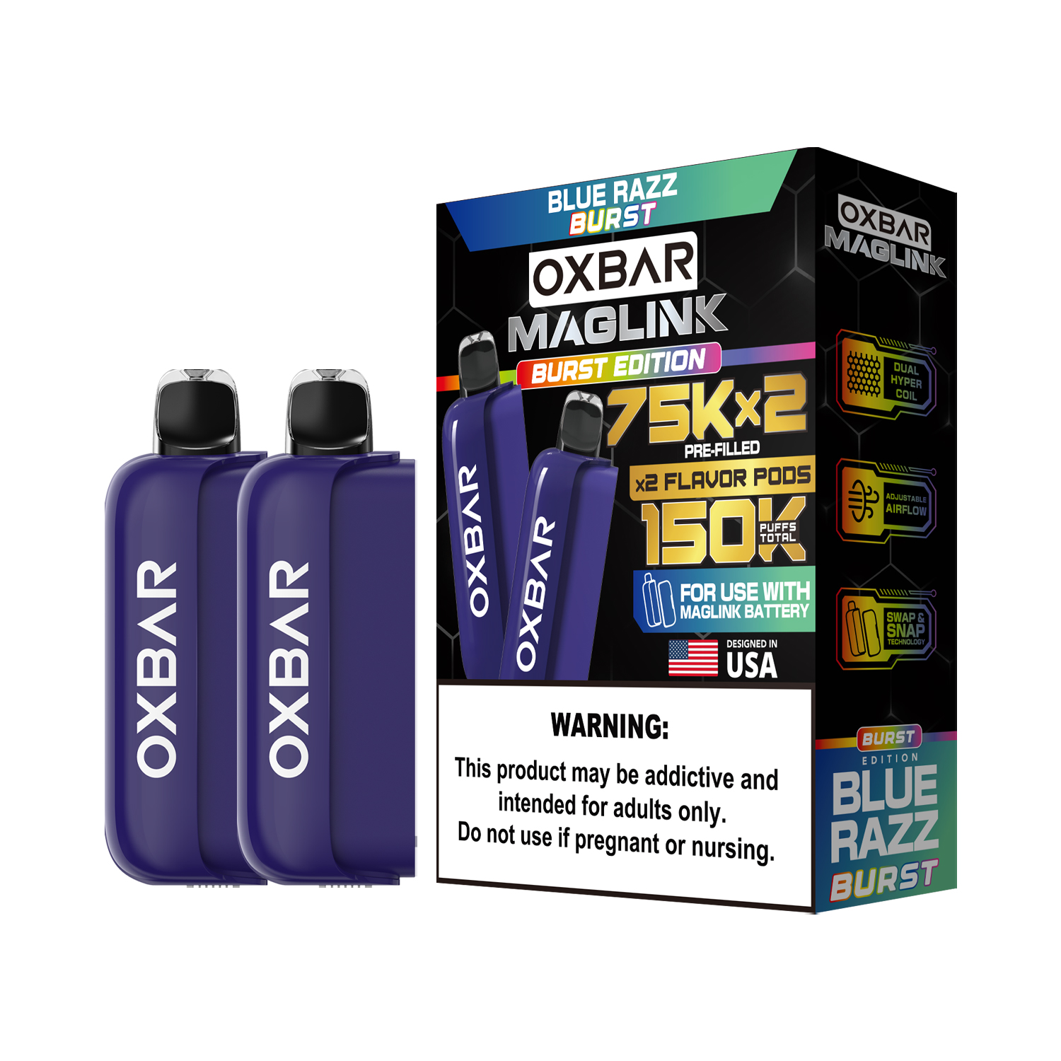 The OXBAR MAGLINK 2PK Disposable Vape Pod 75K Puff offers strong shelf presence, premium branding, and high customer demand in vape retail markets. With its innovative MagLink dual-pod system, long puff capacity, and wide variety of popular flavors, this product is an excellent addition to vape shops, smoke shops, and convenience store inventories.
