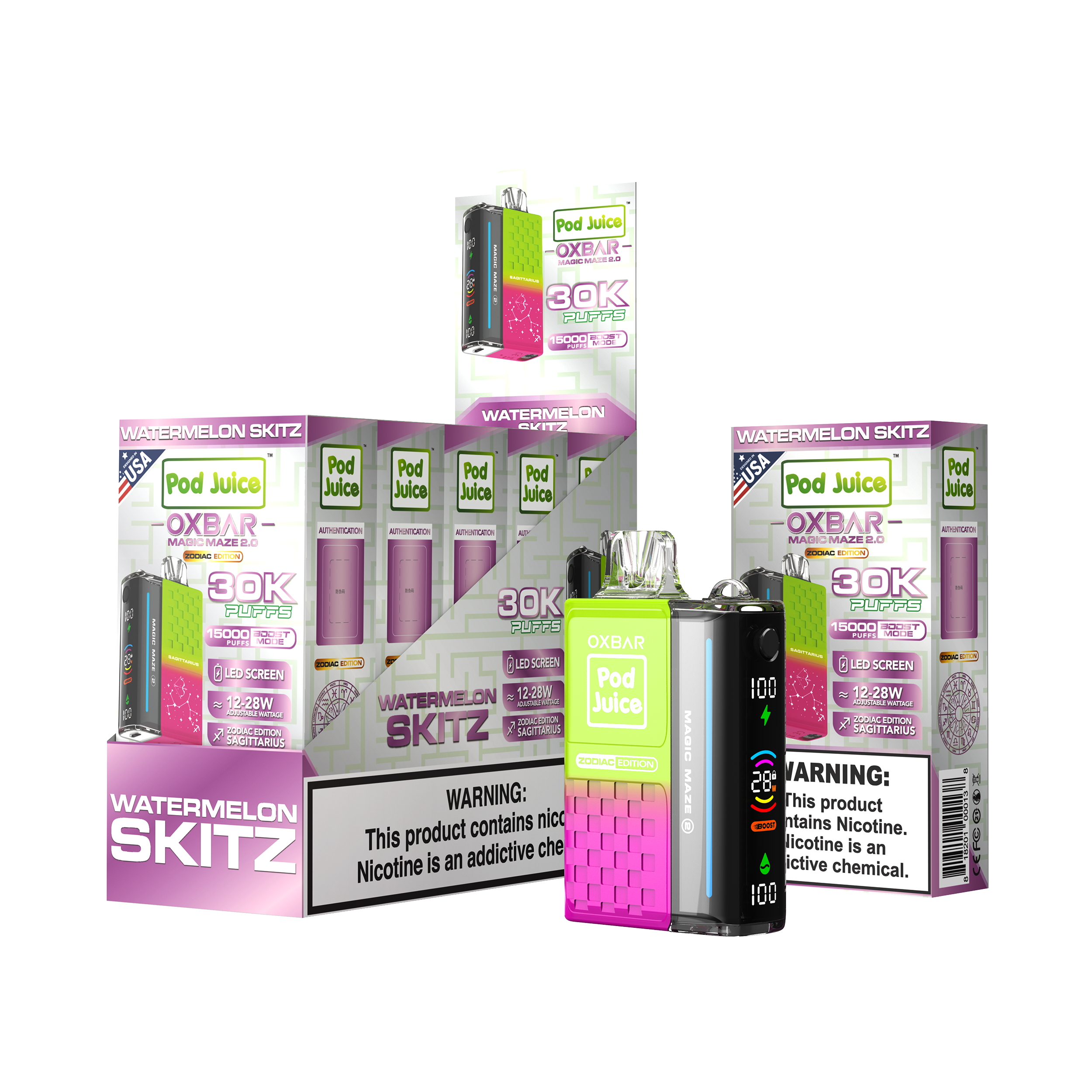 Whether displayed in vape shops, smoke shops, convenience stores, or specialty retail locations, the OXBAR X POD JUICE MAGIC MAZE 2 0% offers strong appeal and is a great addition to wholesale product selections. Click any flavor below to be redirected to the individual flavor product page for more details and ordering.